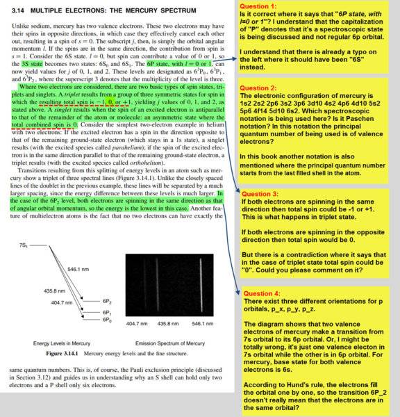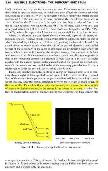 So considering only the valence electrons, we consider here two excited electronic configurations, 6s6p and 6s7s. In both cases, we get a singlet and a triplet state, depending on the spin orientations (see