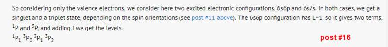 post #11 above). The 6s6p configuration has L=1, so it gives two terms,
