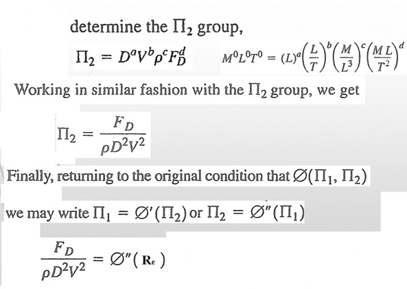 - Participants are attempting to clarify the relationship between π1 and the Reynolds number, questioning whether it is appropriate to express the Reynolds number in terms of other variables such as force, density, diameter, and velocity. There is also discussion about the meaning of the notation used, specifically regarding the function represented by Φ''.