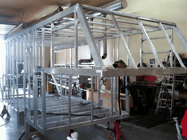 - I am building a cab over slide in truck camper out of closed cell foam, fiberglass and an aluminum skeleton. The sleeping area in the cab overhang will be extended 4 1/2 feet over the cab beyond the vertical support behind the cab. The aluminum supports will run along each side of the overhang (7 1/2 feet wide) all the way to the back of the truck. The weight will also be suspended from the roof which runs from front to back. I’m trying to determine correct gauge and shape of aluminum supports.