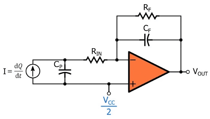 I'm working with a piezoelectric cell and I need to retrieve the variation of the charge of the cell as a voltage signal.