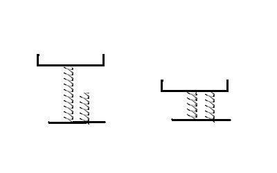 I have been trying to figure out what the two spring system is - I tried two vertical springs in series with the pan and mass between them and I tried two springs in parallel, but neither reproduces the displacement behaviour of the problem. It's not clear to me if I should be trying to understand the setup of the system or they want me to solve a general case. Either way, I'm stumped.