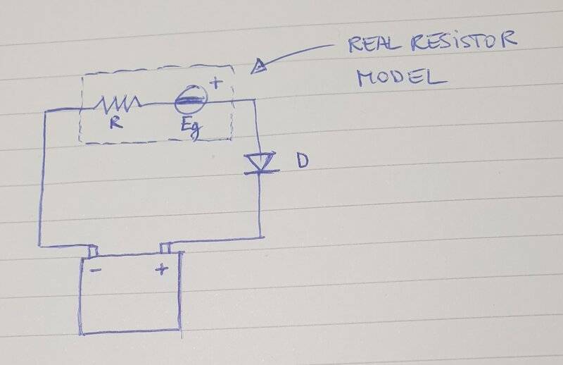 Hi, soppose we have a resistor at a given temperature T connected through a diode to a cell battery.
