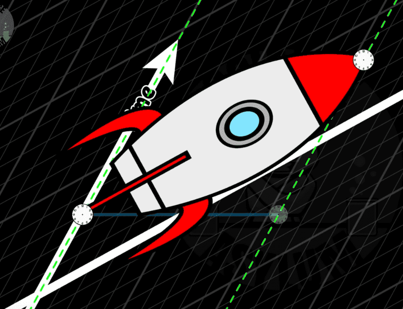 The line at an angle is the length of the ship at rest, and the horizontal line (contraction) is the length of the ship as observed in motion.