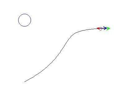 I have the object initially near a gravitational object (a planet). I have one vector pointing towards the planet at all times with a value proportional to BigNumber/(distance)**2. This is vector velGS.
