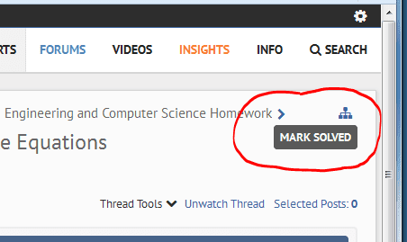 - Several posts discuss the procedural aspect of marking the thread as solved, with conflicting reports about the availability of the feature.