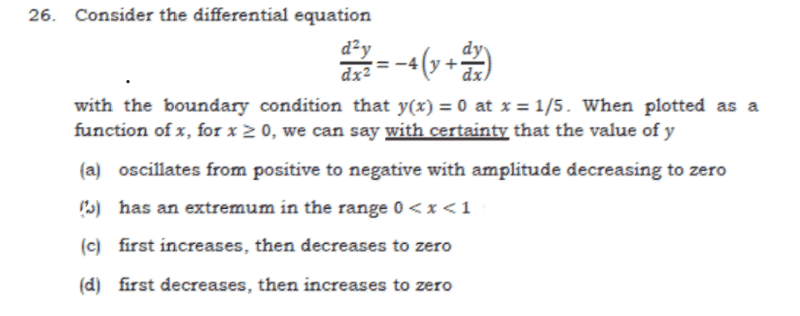 - Participants question how to determine the properties of the function based on the differential equation without solving it. There is discussion about the implications of having only one initial condition for a second-order differential equation and the effect of arbitrary constants on the function's behavior.