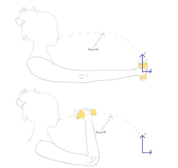 To win, she needs to be majestic(have the center of gravity of the beer to follow a prescribed path, ##f(x,y)=x+30y^2=0##, w.r.t. the coord. system defined as in the figure below), speedy(move the glass to her mouth as quickly as possible) and accurate(always keep her forearm perpendicular to the path):