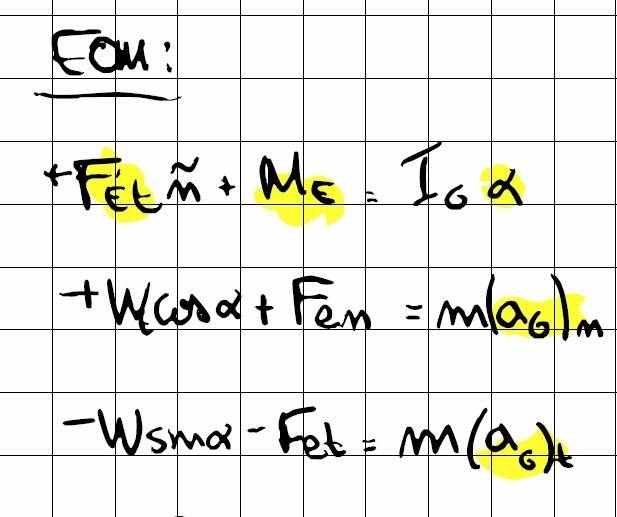 We now end up with a system of 5 unknowns(##\alpha, a_t, F_{Et}, F_{En},M_E##) in 3 equations.