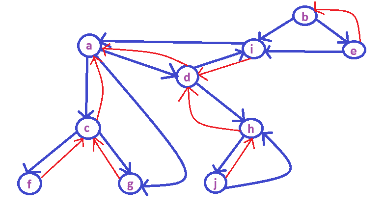 \text{back edges: } x \to y & [d[y],f[y]] \subset [d[x],f[x]] \\ \\