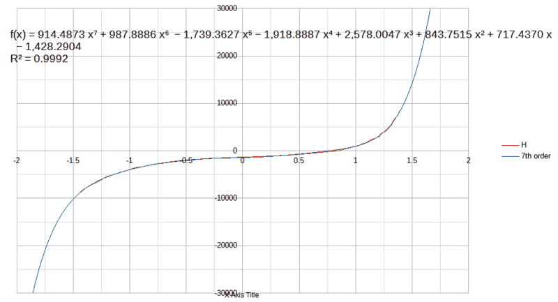 We recently did an experiment to generate the hysteresis curve of a certain material. The experiment involved switching the current in the wire looped around a ring of the material, and recording the first throw of the ballistic galvanometer. I am not going into the details of calculations because the thread is intended to be regarding curve fitting. After certain calculations, we arrived at the following data for a graph of B vs H (in MATLAB):