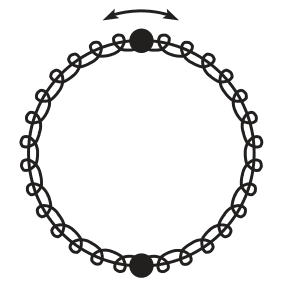 The discussion revolves around analyzing a system involving net forces and equations for two masses moving along a circular path, influenced by springs and an external force. The equations presented appear to relate to dynamics, specifically Newton's second law, but there are concerns about clarity and completeness in the formulation.