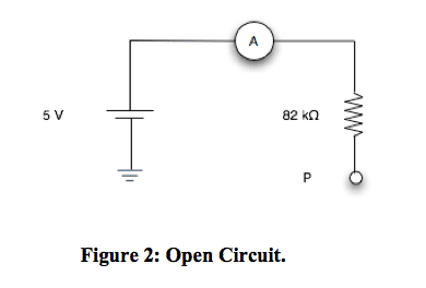Looking at the open circuit demonstrated in figure 2 (see attachment), what is the current through the ammeter? What is the voltage at point p?