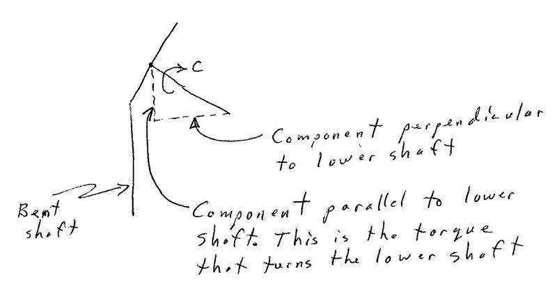 My goal is to work out how much torque is generate at the output end (bottom) of the axle, for a given force applied to the wobble plate periphery.