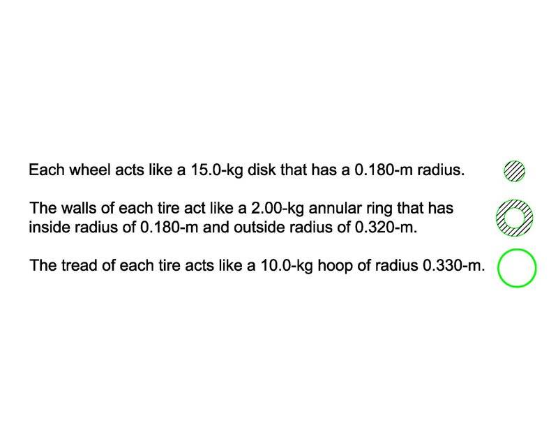 ## I_{wheel} = I_{disk (hub)} + I_{ring (wall)} + I_{ring (treads)} ##