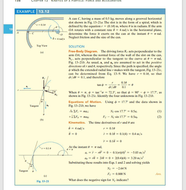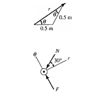 path using the arm guide. If the arm has an angular velocity ##\theta^. = 2rad/s## and an angular acceleartion of 0.4 rad/s^2 at the instant ##\theta = 30degrees##, determine the force of the guide on the can. Motion occurs in the horizontal plane.