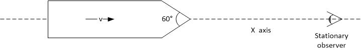 - The front of a spacecraft forms a point at an angle of 60 degrees. As the spacecraft increases speed, what happens to this angle as observed in the rest frame?
