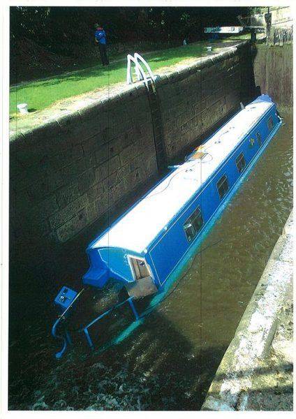 Hi everyone, this is a real world problem following the sinking of a narrowboat in 2014. The boat caught on the side of the lock as the water level dropped, and the resultant combination of pitch and heel resulted in the boat taking on water at the stern and sinking - luckily with no loss of life or injury. Without giving too much away (as the owner has settled the case with the navigation authority) I can offer the following information: