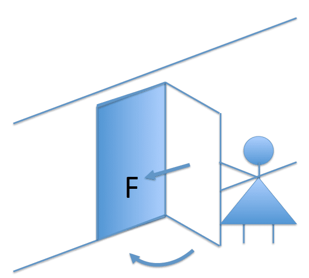 the door (l=2 from the hinges) with a force of F = 100N, lasting a time