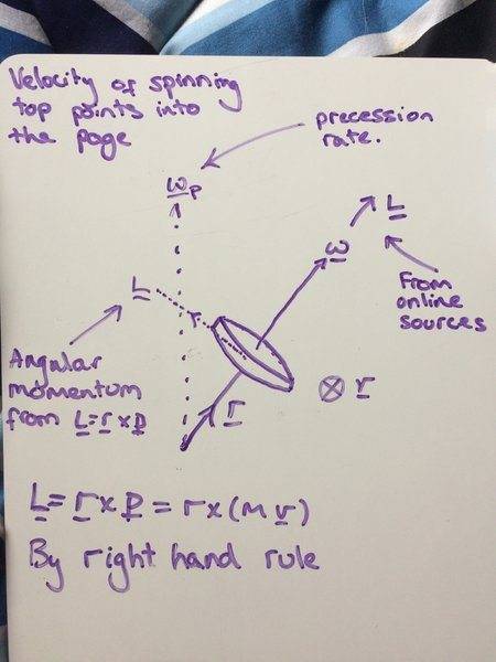The discussion revolves around understanding the direction of angular momentum for a spinning top and its relationship to precession. The original poster expresses confusion regarding the application of the formula for angular momentum, specifically questioning why the angular momentum appears to point along the axis of the spinning top rather than at an angle as calculated.