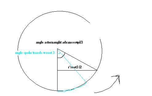 (c)If the astronaught climbs halfway up a spoke and let's go how far from the base of the spoke will he hit the cylinder, assuming the astronaught is point-like?