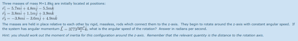 The discussion revolves around a problem related to angular momentum and rotation rates, specifically focusing on the calculation of moment of inertia and its application in determining rotation rates about the z-axis.