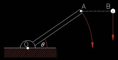 A ball B is left to fall at the same time the rod is left to rotate.
