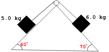 Calculate the tension in the cable connecting the two masses. Assume all surfaces are frictionless.