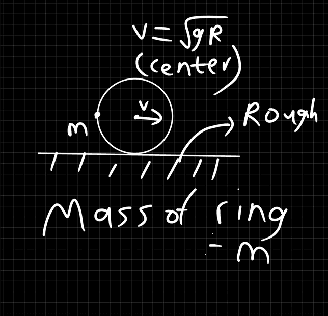 A ring is rotating as shown in the figure. At that particular instant when the velocity of the geometric center is $$ \sqrt{gR} $$ find the