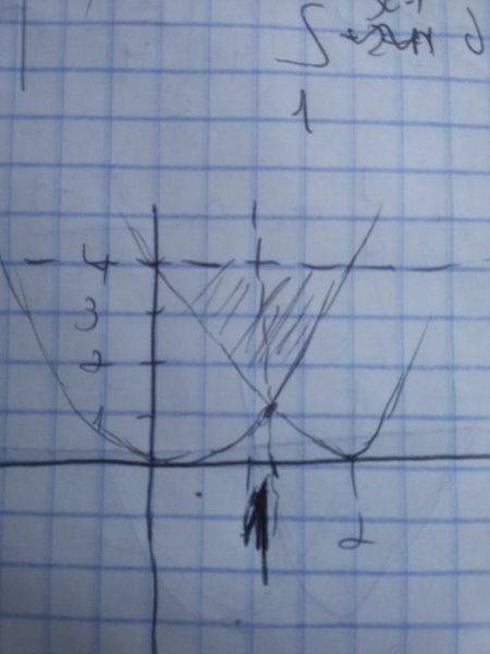 So my area of integration is: y=4 ; y=x2 and y=(x-2)2