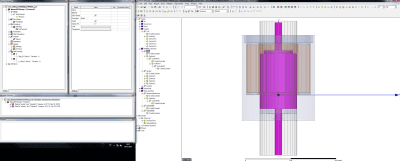 I am simulating a solenoid, a very easy one, with a core and a coil. And a translational band (2mm). The only problem is, that i cannot put the band correctly because my solenoid is in a housing, the 2 shafts goes out of the model. and of course i considered that the obejcts are not touching each other. I have warning messages in intersecting objects. i upload the pictures (cylinder 41 is the motion band).