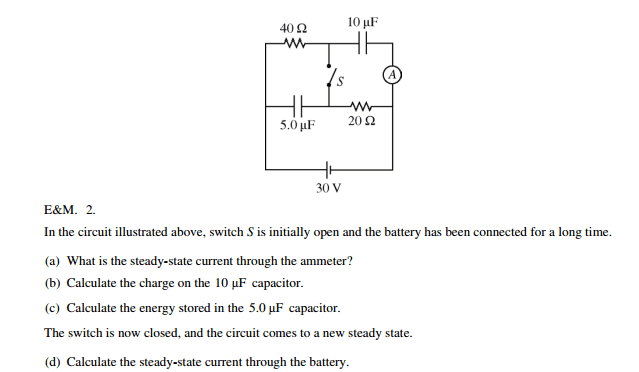 Could somebody help me on the problems given in the attachments? I know E&M well but these problems stumped me(In the RC Circuit I need help only on part (d) of the question). Tomorrow is my AP C E&M exam. I am too nervous about it. Based on how these problems stumped me, do you think I should write tomorrow or should I write it next year or next semester.