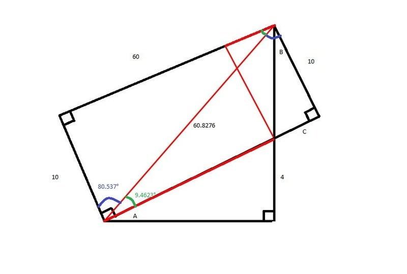 3. "The attempt at a solution": This would be the second attachment. I've wracked my brain for hours and have come to the conclusion I'm either missing something simple or this will involve more than just geometry and trigonometry. The 2 red triangles were suggested by another user whom I suspect didn't look at it hard enough to realize it didn't get any closer to the solution.