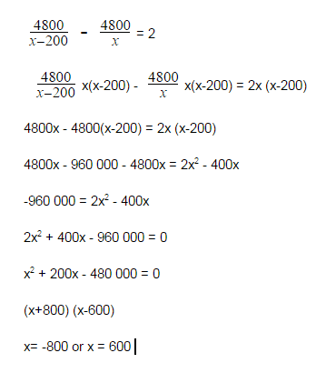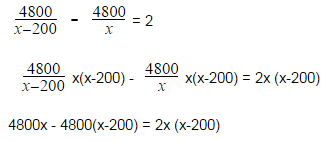 4800x−200>4800x4800x−200>4800x\displaystyle \frac{4800}{x-200}>\frac{4800}{x}.