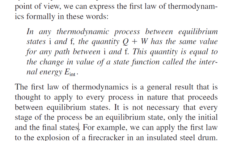 In Halliday's physics book, there is an example of the first law of thermodynamics that shows its application. The figure below explains this example: