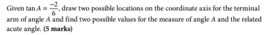 Two possible locations on the coordinate axis for the terminal arm of angle A: