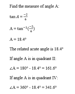 Two possible values for the measure of angle A and the related acute angle: