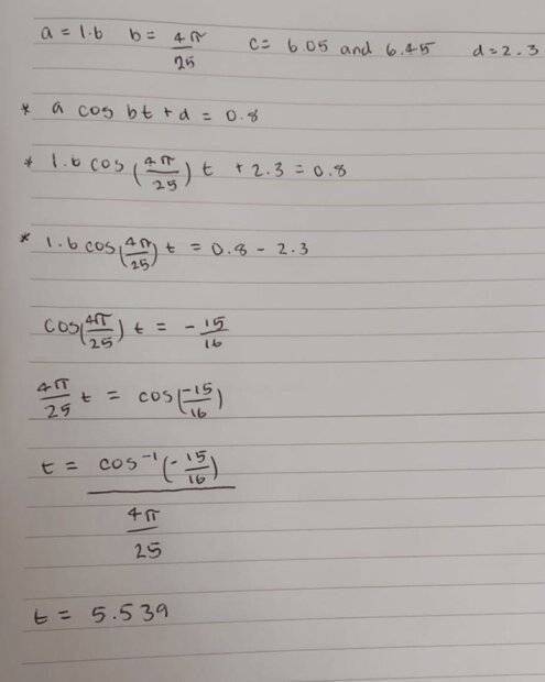 1.6 cos (4pi/25) t + 2.3=0.8