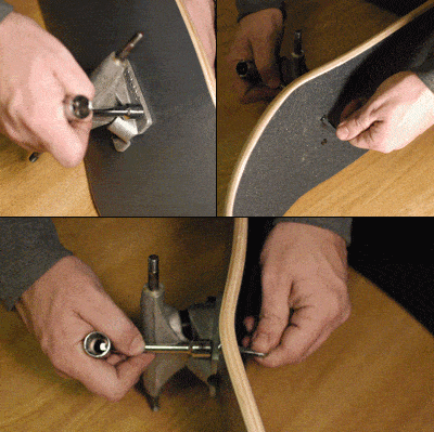 As you can see in the pictures below the trucks are attached to the skateboard with four screws nuts and bolts, with a 2~3mm piece of rubber between the truck and the board. I've always wondered if tightening the screws bolts harder, decreases or increases the strength of the 7-layered plywood. The same question goes for the rubber; does it decrease or increase the strength of the board? What setup will make the board last longest?