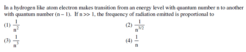f = ΔE/h = ##k\left [ \frac{1}{(n-1)^2} - \frac{1}{n^2} \right ]##= ## \frac{k(2n-1)}{n^2(n-1)^2}##