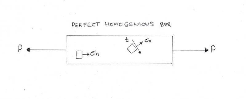 P.S. Only if there is some defect in a bar, can I imagine a shearing stress. in a straight bar entirely under uniaxial normal stress.