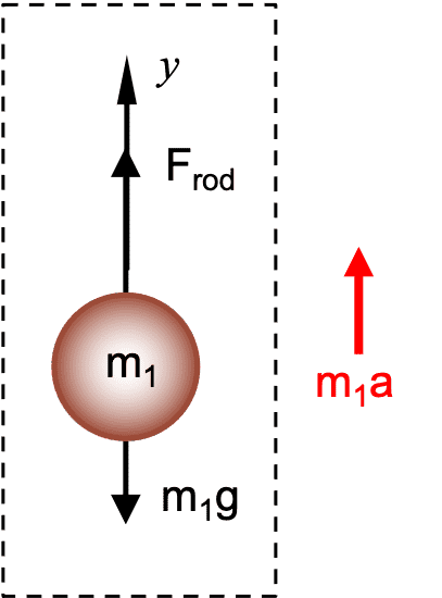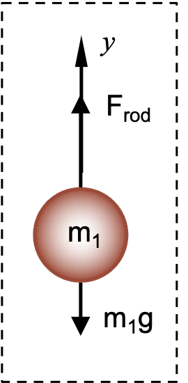 Anything up is positive and anything down is negative, so $$F_{\text{net}}=F_{\text{rod}}-m_1g.$$7. Set the net force vector equal to the mass times acceleration vector outside the FBD. Solve for what you are asked to find.