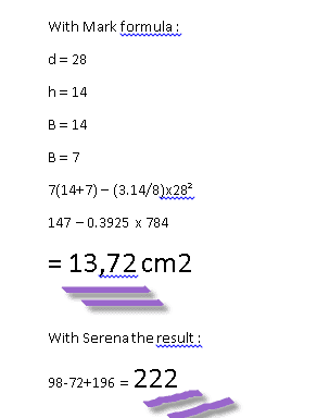 - Clarifications are made regarding the dimensions used in the calculations, specifically the diameter and bases of the trapezoid.