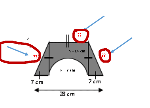 The discussion revolves around calculating the area of a geometric figure, involving a circle and triangles. Participants explore different methods and approaches to find the area, including the use of trapezoids and semi-circles. The conversation includes technical reasoning and attempts to clarify the relationships between various dimensions of the figure.