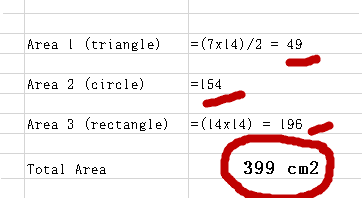 - Another participant points out that the areas should not simply be summed, highlighting the need to account for the number of triangles and the semi-circle's contribution as a subtraction rather than an addition.
