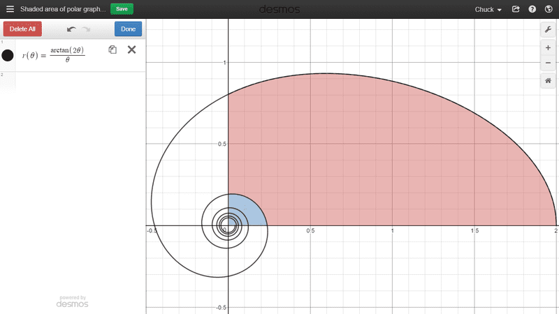 I'm just wanting a quick clarification on how finding the area under a polar graph works. Say we have the polar graph of ##r\left(\theta \right)=\frac{\arctan \left(2\theta \right)}{\theta }## as shown below: