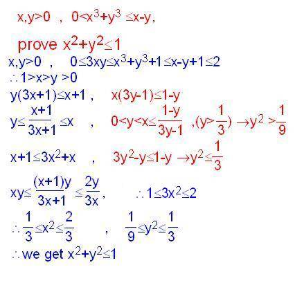 Let x and y be positive real numbers satisfying the inequality $\displaystyle x^3+y^3\le x-y$.