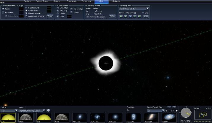 For instance, here is a screen shot of the program showing the Feb 26, 1979 total solar eclipse as seen from Portland, Or.