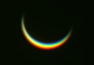 "Rainbow" is problematic because as I mentioned, the refracted light of rainbow has the long tail to the interior. Which means that the extreme violet colour of a rainbow, inherently dim for eye, is overlapped by the bright background of other colours.