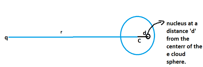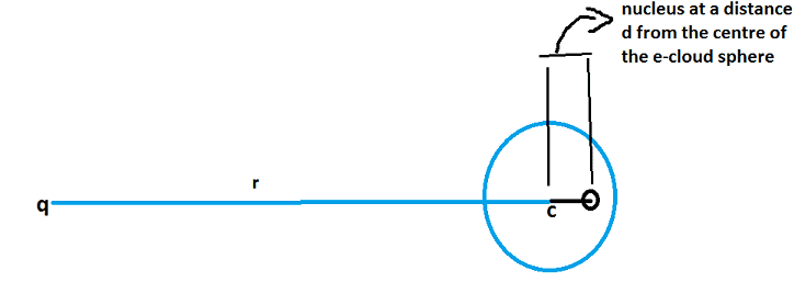 The discussion revolves around the attractive force in an atom influenced by a nearby point charge, focusing on the interactions between the nucleus and the electron cloud. Participants explore the implications of charge distribution and electric fields in the context of atomic models.